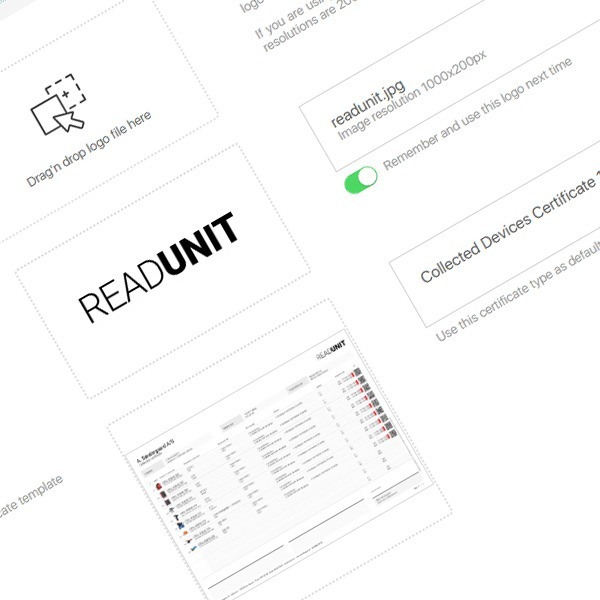 Selected equipment certificates are produced on Readunit’s server and returned to the user as a PDF file.