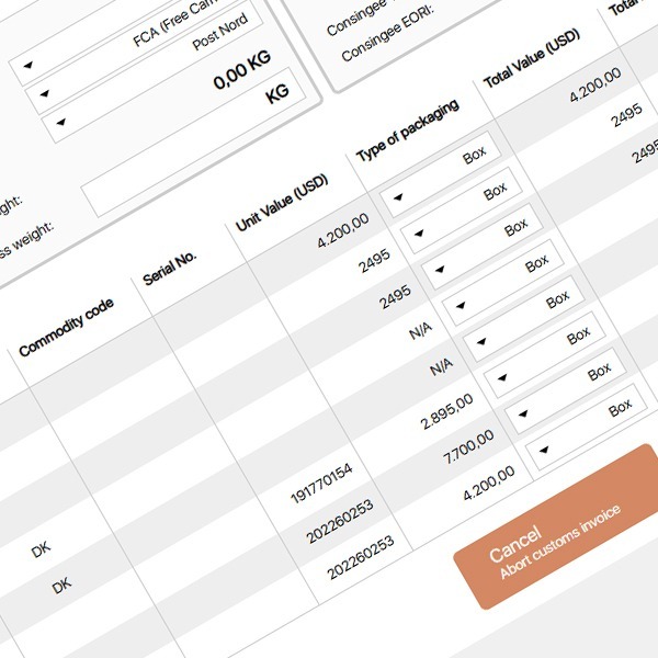 Readunit can automatically generate commercial invoices for customs clearance purposes when exporting or importing goods outside the EU.