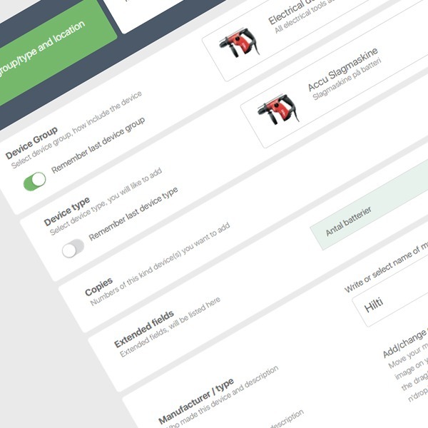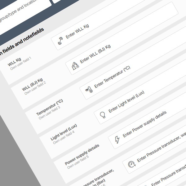 This means that if you have specific data fields not included in the standard system – such as temperature, pressure, lifting capacity, pulling force, weight (kg), or similar – you can easily create these fields yourself.
