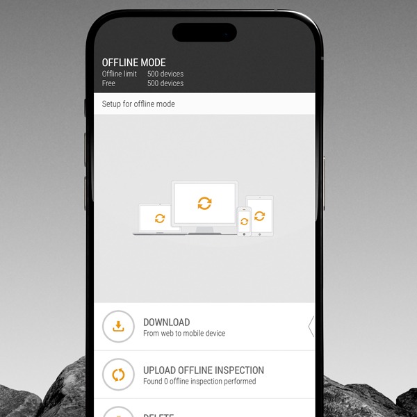 The mobile app supports offline inspections of up to 500 equipment items (depending on device RAM).